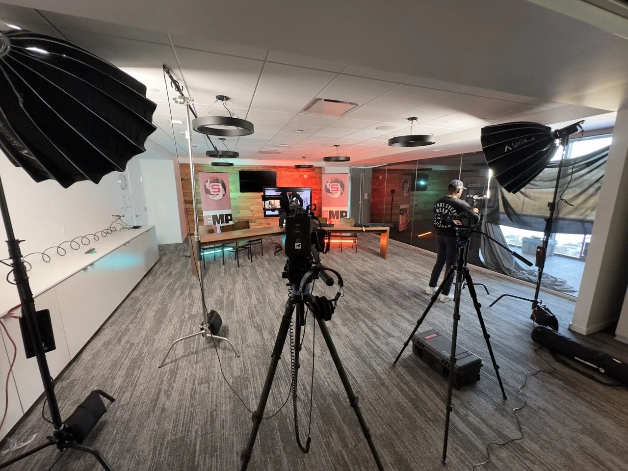 Filming Penn State Football practice as a camera operator on an Ursa Pro.